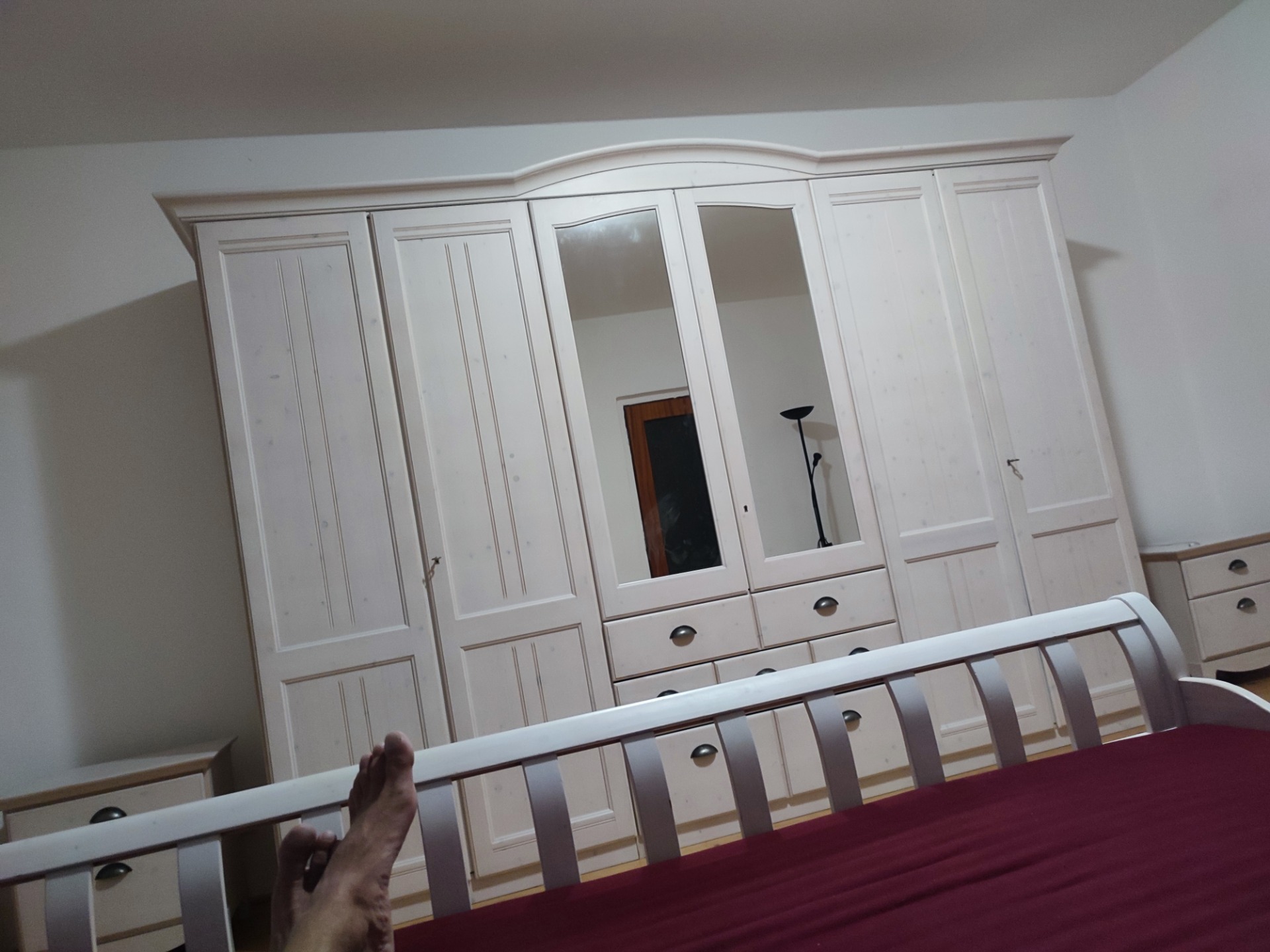 Děkujeme za krásnou ložnici, super domluvu i montáž. Ložnice má jen pár estetických vad (odřeniny) a funkčních vad, jako je jedno propadlé dno u šuplíku a nebo vykloktaná úchytka u dvířek, ale to lze u použitého nábytku očekávat.